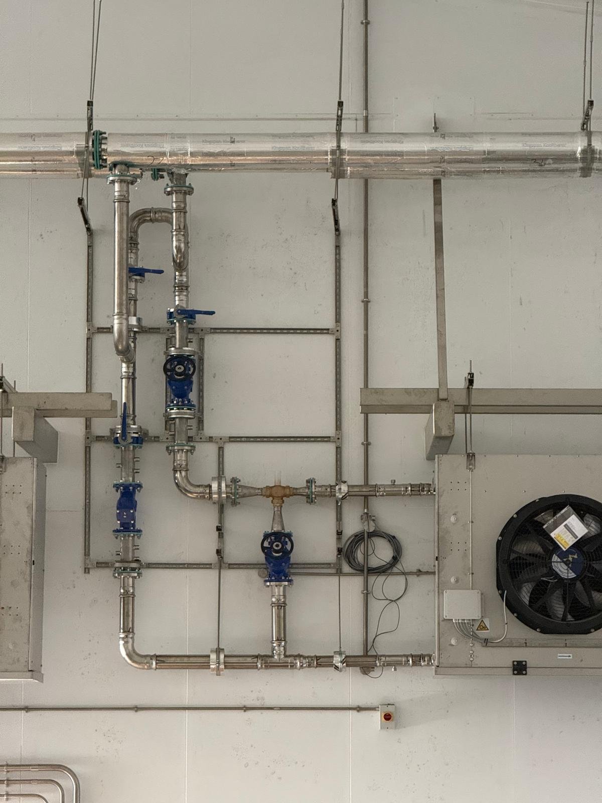 Works within the warehouse included the installation of new chilled distribution pipework from a newly installed chiller plant, serving five blast coolers within the cheese production area and AHUs within the salt store.